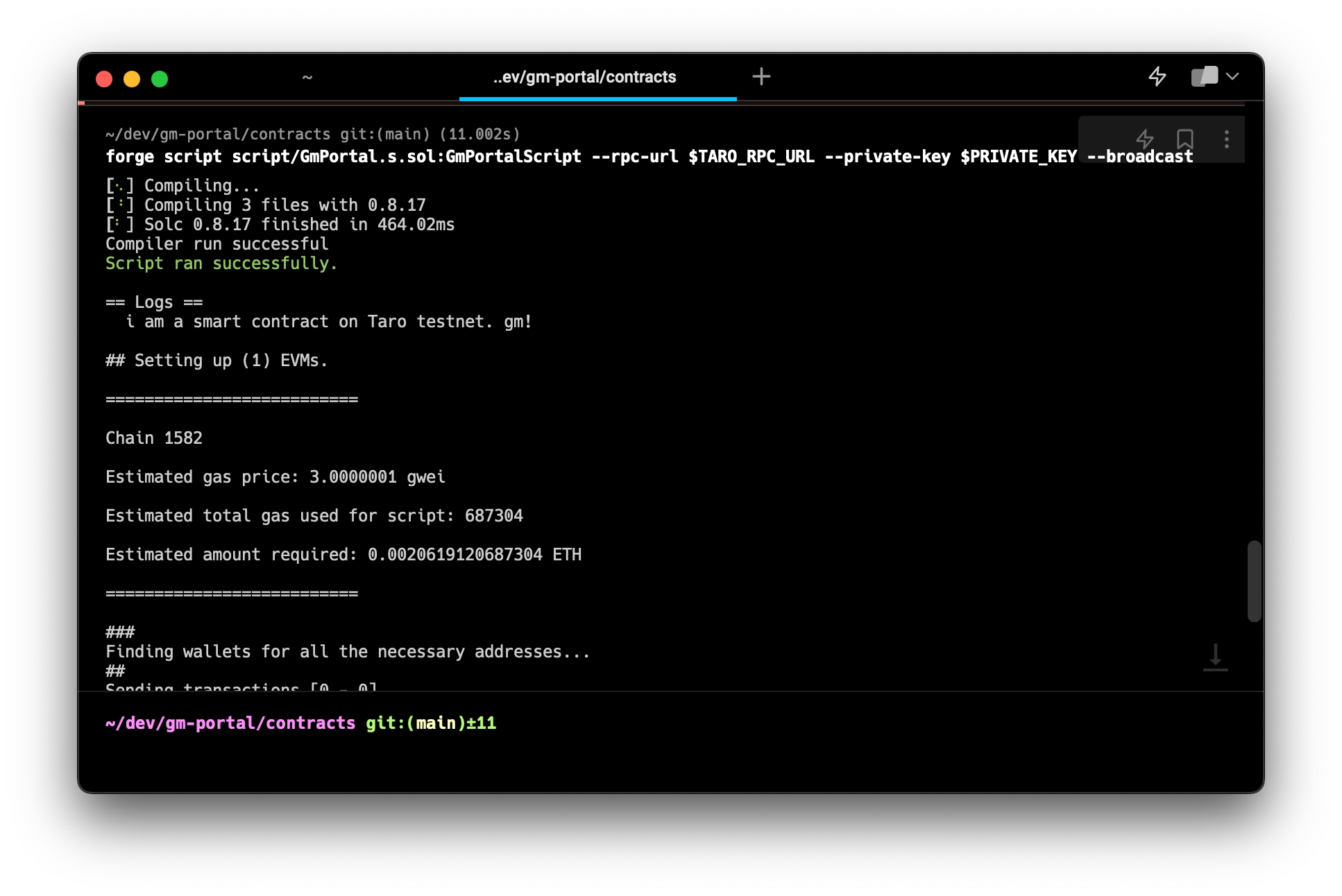 forge script script/GmPortal.s.sol:GmPortalScript --rpc-url $BUBS_RPC_URL --private-key $PRIVATE_KEY --broadcast